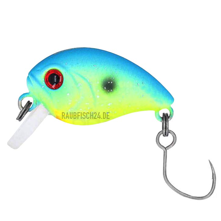 Mit dem Bassday Mogul Area Crank 27SR haben wir in Kooperation mit Bassday Japan einen reinrassigen Mini-Crankbait zum Forellenangeln im Pond konstruiert! Ausgestattet mit einem VANFOOK ME-41MB Schonhaken in Größe #6 wird der nur 27 Millimeter lange, 2 g leichte und ca. 0,3 bis 0,6 m tief laufende Mogul Area Crank 27SR am besten an einer Forellenrute mit Regular-Taper und einem Wurfgewicht bis max. 5 g gefischt.