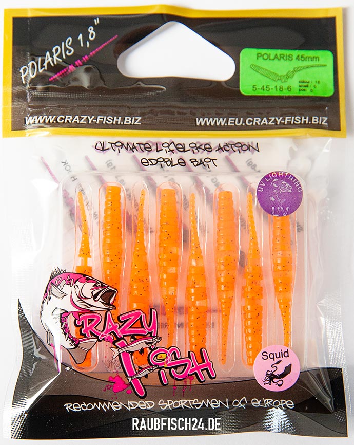 Der Crazy Fish Polaris lässt sich sehr vielseitig einsetzen, da er sowohl am Jig als auch am Offset-Haken einen perfekten Lauf entfaltet. Die aufreizenden Schwimmbewegungen des Polaris bleiben nicht lange unentdeckt.