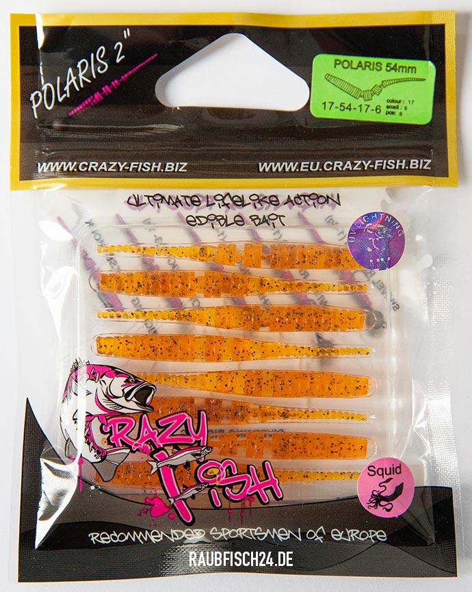 Der Crazy Fish Polaris lässt sich sehr vielseitig einsetzen, da er sowohl am Jig als auch am Offset-Haken einen perfekten Lauf entfaltet. Die aufreizenden Schwimmbewegungen des Polaris bleiben nicht lange unentdeckt.