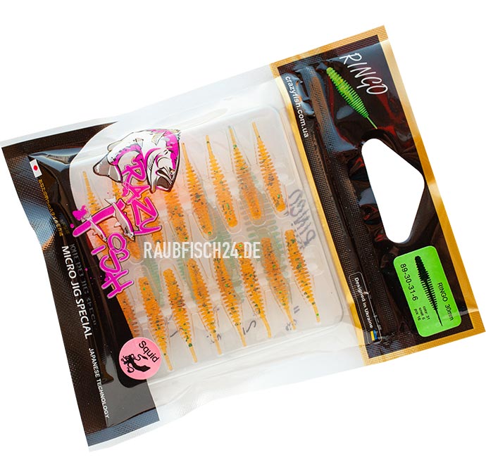 Der Crazy Fish Ringo 30mm lässt sich sehr vielseitig einsetzen, da er sowohl am Jig als auch am Offset-Haken einen perfekten Lauf entfaltet. Die aufreizenden Schwimmbewegungen des Ringos bleiben nicht lange unentdeckt.