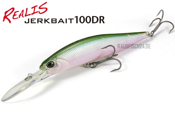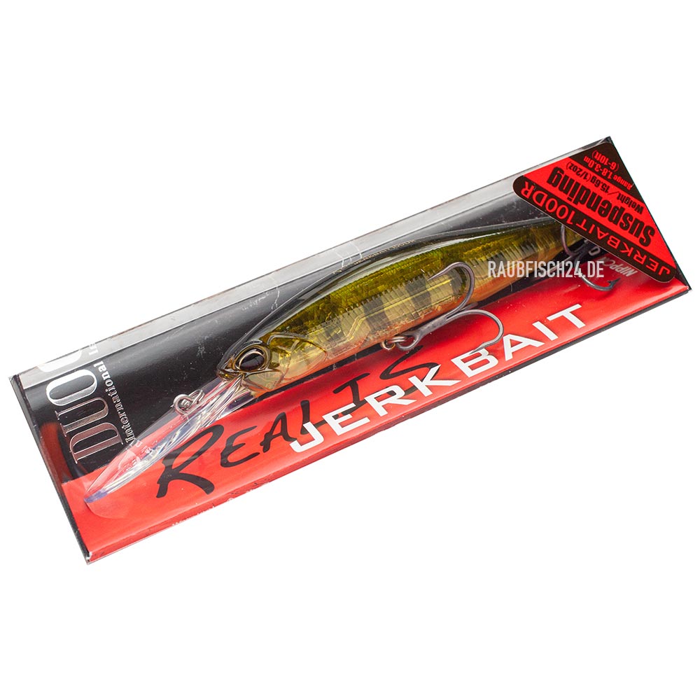 Nach den unglaublichen, weltweiten Fangerfolgen des Jerkbait 120SP und Jerkbait 100SP geht es nun eine Etage tiefer. Der 100 mm lange Tiefläufer verfügt über ein Magnet Weight Transfer System, welches für maximale Wurfweite sorgt und dem Köder ein optimales und aggressives Ansprechverhalten verleiht. Mit dem Duo Realis Jerkbait 100DR erzielt man eine Tauchtiefe von bis zu drei Metern und durch das perfekte Schwebeverhalten kann man lange im Sichtfeld des Räubers bleiben. Der ideale Köder zum fischen in tieferen Gewässern und an Kanten.
