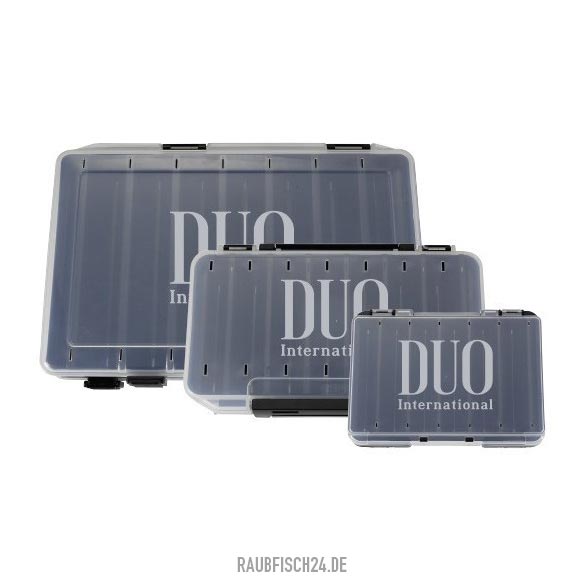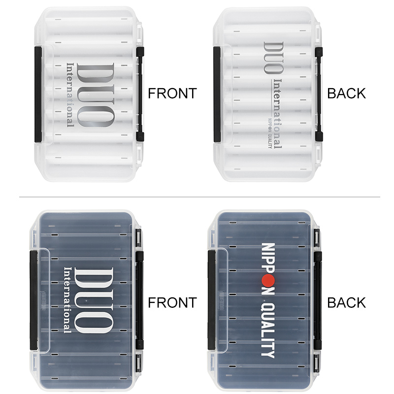 Doppellagige Wobblerbox, hergestellt in Zusammenarbeit mit der Firma Meiho. Das Zickzacksystem der Meiho Reversible Boxen ermöglichen grösstmöglichen Stauraum auf wenig Platzverbrauch. Beidseitig bedruckt mit dem Logo „Duo International“ und „Nippon Quality“. Ideal für den mobilen Spinnangler.