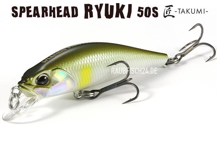 Der Spearhead Ryuki Takumi eignet sich speziell für das gezielte Angeln an kleinen bis mittelgrossen Bächen. Er sinkt ein wenig langsamer als das klassische Ryuki S Modell und zeigt durch seine etwas bulligere Form eine stärkere Wobblingaktion bei langsamer Strömung. Dieser kleine Twitchbait ist übrigens auch ein absoluter Top Barschwobbler.