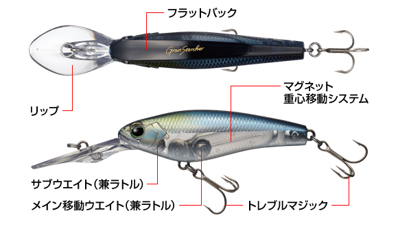 Der Evergreen Gran Searcher ist ein Cranking Shad. Der 65 mm lange, schwimmende Wobbler windet sich in hektischen Bewegungen durchs Wasser und imitiert so perfekt ein flüchtendes Fischlein. Ob Rapfen, Zander, Barsch oder Hecht – dieser Wobbler nimmt es mit jedem Raubfisch auf. Nach dem Auswurf kurbelt man die ersten Meter schnell ein, um den 8.0 g schweren Wobbler auf Tiefe zu bringen. Danach beginnt man das Twitchen mit kurzen Rutenschlägen. Zwischen den Schlägen legt man immer wieder eine Pause ein. Es kommt häufiger vor, dass die Fische den Gran Searcher genau in dieser Phase attackieren.