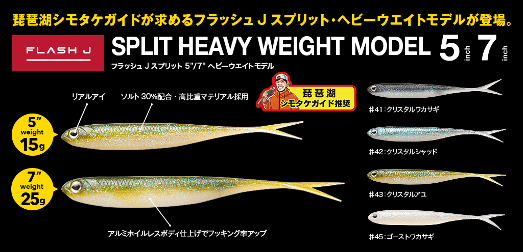 Fish Arrow Flash J Split 5 Heavy – Low Action Shad mit V-Tail zum Vertikalangeln.