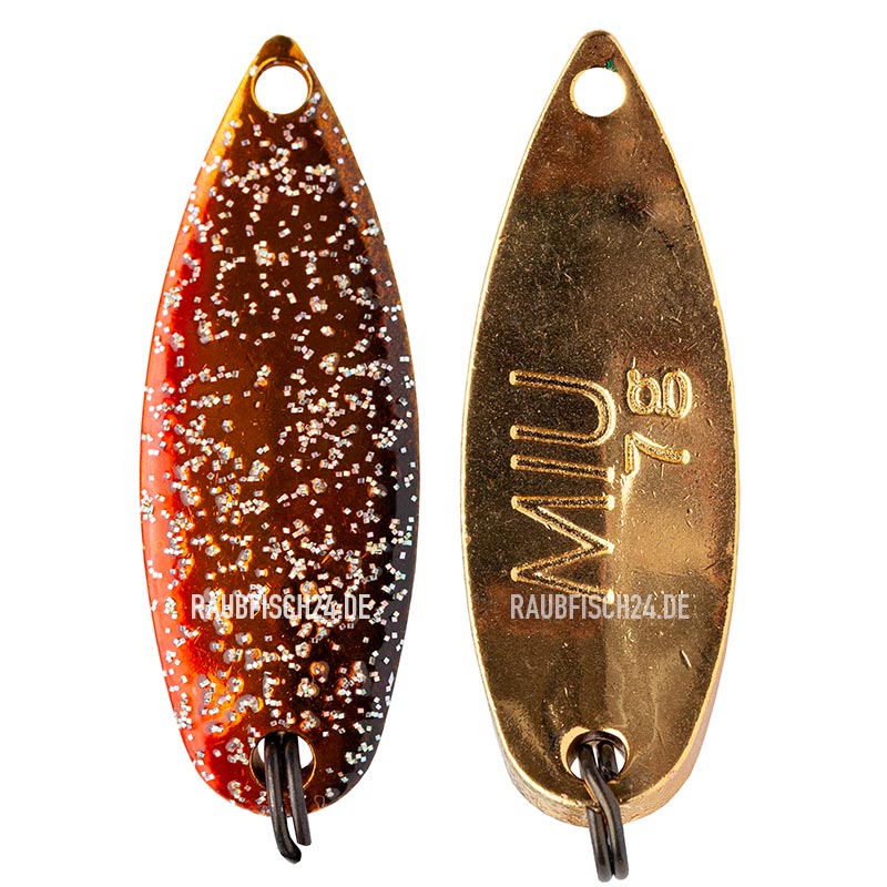 Der Löffel des Miu Native ist leicht gewölbt und mit entgegen gesetzt gebogenen Ösen am oberen und unteren Ende versehen. Ausgestattet mit einem kleinen Schonhaken und zwei Sprengringen lässt sich der 7 Gramm schwere Miu Native an einer leichten Forellenrute mit Powerrating UL oder XUL am besten führen.