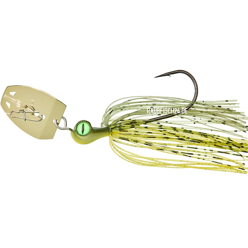 Dieser Gunki Chatterbait ist von Amphibien inspiriert, die in unseren Gewässer heimisch sind. Das übergroße ‚SIGNAL-AUGE‘ ist sehr präsent, quasi mit hypnotisierender Wirkung unter Wasser, Bisse provozierend. Die Palette vor dem Kopf wurde bewusst kleiner gewählt als üblich, sie erzeugt trotzdem ausreichend Vibrationen, ideal an stark befischten Gewässern, wo subtilere Auftritte oft mehr Erfolg bringen. Kompakter und effizienter Köder für Hecht, Barsch, Bass und Waller! Nach ausgiebigen Tests können wir unseren Softbait V²IB als Trailer nur wärmstens empfehlen!