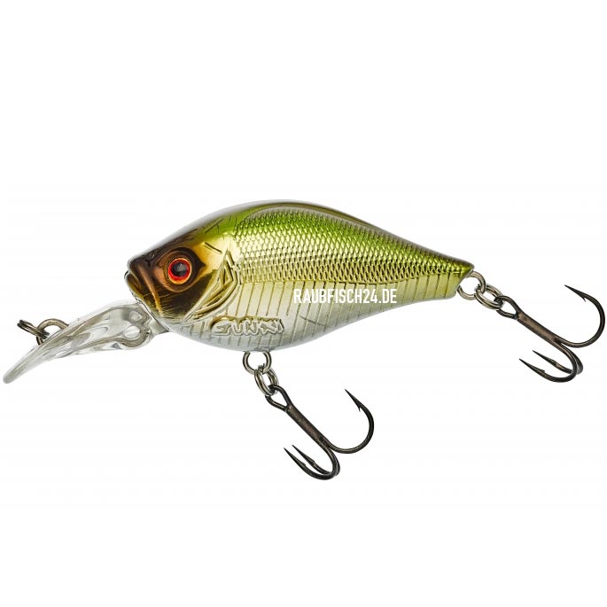 Dieser kleine, flachlaufende Crankbait (bis 60cm) wobbelt schon beim leisesten Zug. Ideal um damit große Flächen abzusuchen, wenn die Räuber flach stehen. Man kann ihn sehr langsam, aber auch sehr schnell einkurbeln, je nachdem, wie die Räber drauf sind! Viele Crankbaits schwimmen wie ein Korken, was bei einem Stop total unnatürlich aussieht. Der Gunki Gigan 39 F steigt hingegen recht langsam zur Oberfläche und bietet damit die Möglichkeit zum Angriff!
