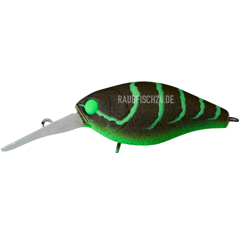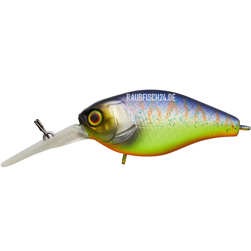 Der Illex Diving Cherry 48 erreicht ziemlich exakt 2 Meter Tiefe und ist nicht nur von der Größe her für viele Räuber interessant. Er vereint ‚Wobbling‘ mit ‚Rolling‘ und wenn das Wasser flacher als 2 Meter ist, klopft er mit seiner breiten Schaufel an Steinen und versunkenen Bäumen an (‚bottom bouncing‘), dabei bewegt er sich rollend vorwärts, die Drillinge drehen sich bei Kontakt nach oben und man bleibt nur selten hängen. Ideal zum aufspüren von Fischen an Hindernissen.
