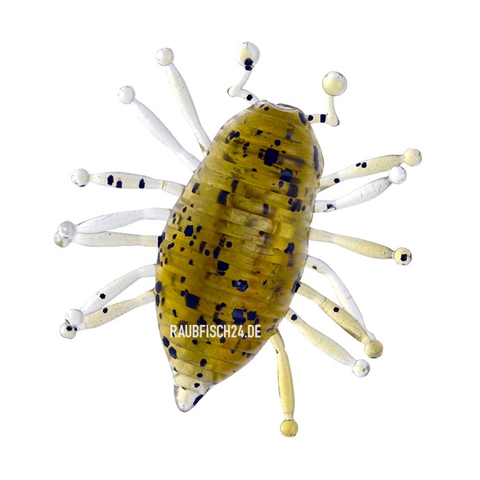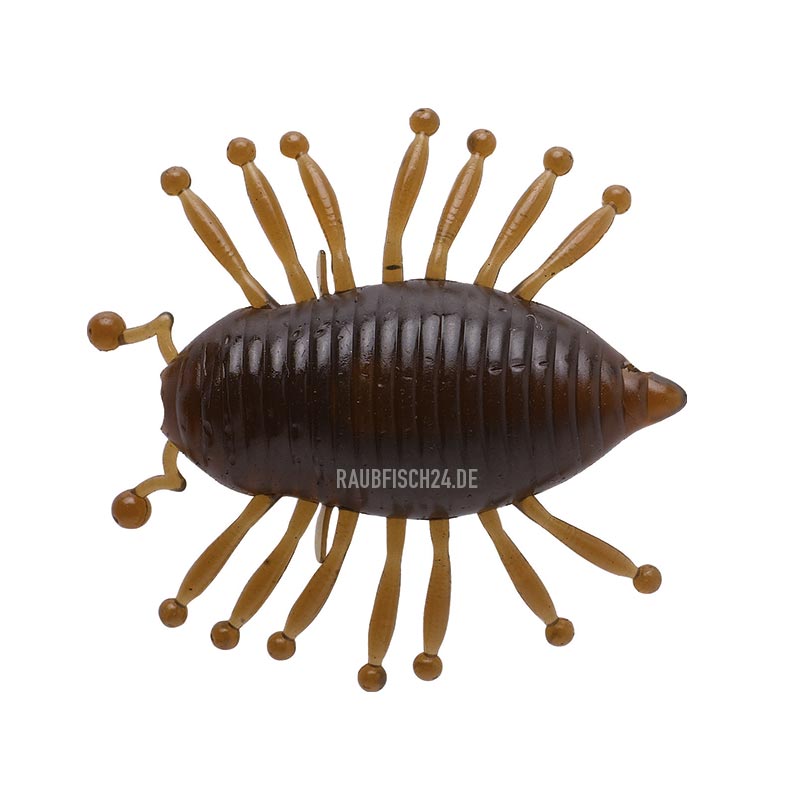 Die Woodlouse ist eine schwimmende Insektenimitation für die Angelei auf Rapfen, Barsch, Döbel, Forelle und Black Bass. Der Körper ist teilweise hohl und die kleinen Tentakel sind für feine Vibrationen zuständig. Am besten ködert man die Woodlouse mit einem Illex Finesse Downshot oder Finesse Guard Haken der Größe 3 an und zwar am Kopf exakt zwischen den beiden Fühlern, damit die Balance erhalten bleibt. Lassen sie die Woodlouse frei mit der Strömung treiben oder setzen sie im Stillwasser ab und an ganz kleine Zupfer, aber aufgepasst, dieser Miniköder verursacht Maxi Adrenalinstösse beim Anbiss! Auch am leichten Jigkopf mit kleinem Haken sehr erfolgreich auf Barsche, die unsere Woodlouse offensichtlich mit Gammarus-Krebschen verwechseln.