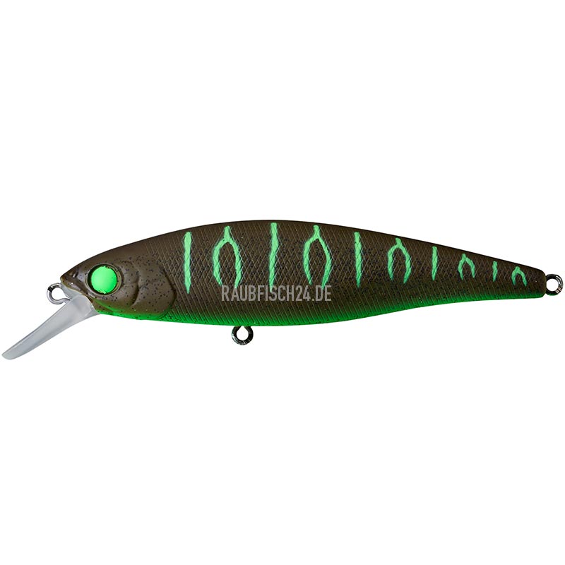 Der Squad Minnow ist ein Jerk Bait, der alle nötigen Eigenschaften bietet um einen Anbiss zu provozieren. Ein perfekter Suspender, der beim Stop sofort steht wie tot, ein Schlüsselreiz, um den nur nachlaufenden Räuber interessiert zu halten. Diese Eigenschaft resultiert aus fest eingebauten Gewichten, die ihm seine Balance geben und dazu perfekte Wurfeigenschaften verleihen. Er ‚dartet‘ wenn man ihn jerkt, kurze twitches im Takt lassen ihn sogar ‚walk the dog‘ laufen.