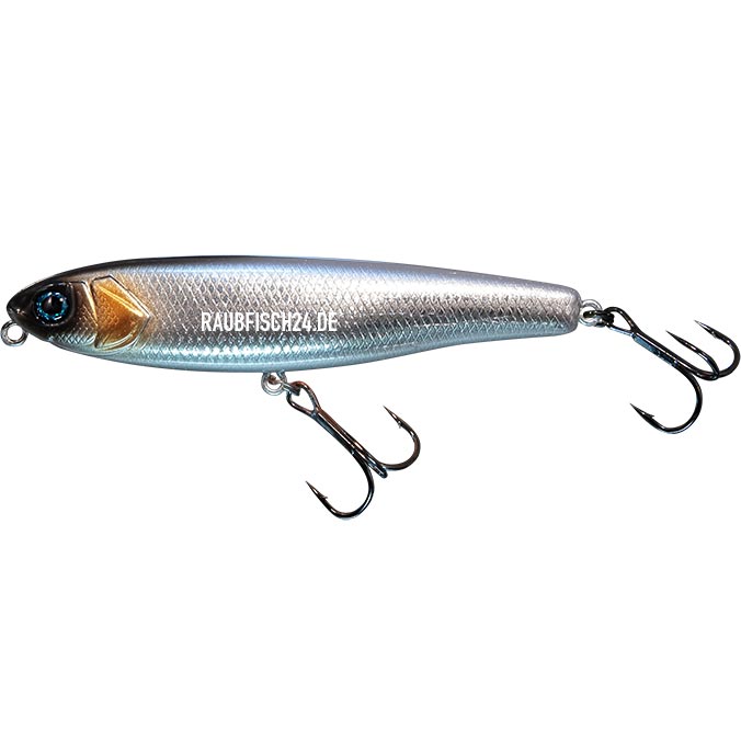 Der Jackall Bonnie 85 wurde entwickelt, um große Wasserflächen schnell und effektiv im «walk the dog» Stil absuchen zu können. Ein prima Köder für Hecht, grosse Rapfen und Bass. Die eingebauten Tungsten-Kugeln garantieren exzellente Wurfweiten und den speziellen Sounde ekt. Der Bonnie hat an seiner Vari-Öse drei Vertiefungen, die bei direktem Anbinden drei verschiedene Laufstile zulassen. Er hat nicht weniger als 4 Kammern für die Tungsten-Kugeln, damit diese exakt am richtigen Platz sitzen. Sein Verhältnis von Auftrieb zu Eigengewicht ist optimal und er ist dadurch unter allen Bedingungen leicht zum Laufen zu bringen.