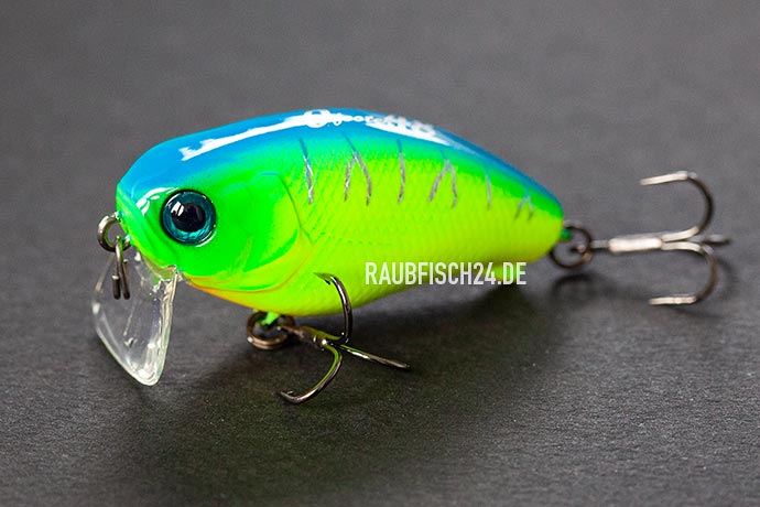 Der flachlaufende Crank – Jackall Cherry Zero Footer 48 ist 48 mm lang, 7.6 Gramm schwer und taucht auf 0.0 – 0.2 Meter ab. Perfekt geeignet zum Barsch, Döbel, Rapfen- und Hechtangeln, zwei scharfen Drillinge greifen sehr gut im Räubermaul.