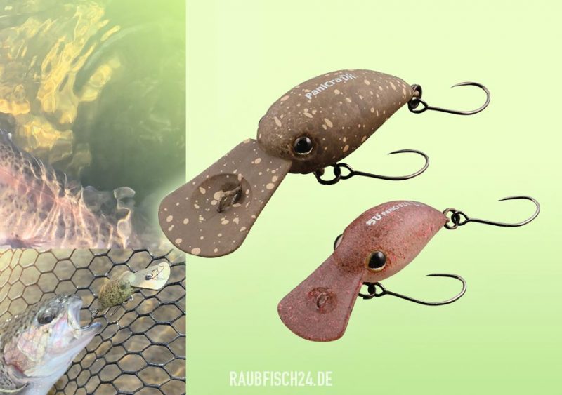 Der Chibi Panicra DR (Deep Runner) ist ein Mikro-Crankbait, entwicklelt für die Angelei in japanischen Forellen-Seen (‘AREA’). Man kann ihn ultra langsam, aber auch schnell führen, auf jeden Fall ist der Chibi Panicra ein wahrer Fisch-Magnet! Machen sie bloß nicht den Fehler und setzen ihn nur auf Forellen ein! Unsere heimischen Barsche, Döbel, Rapfen fallen nämlich ebenfalls auf diesen kleinen Verführer herein. Ausgestattet mit Einzelhaken ohne Widerhaken.