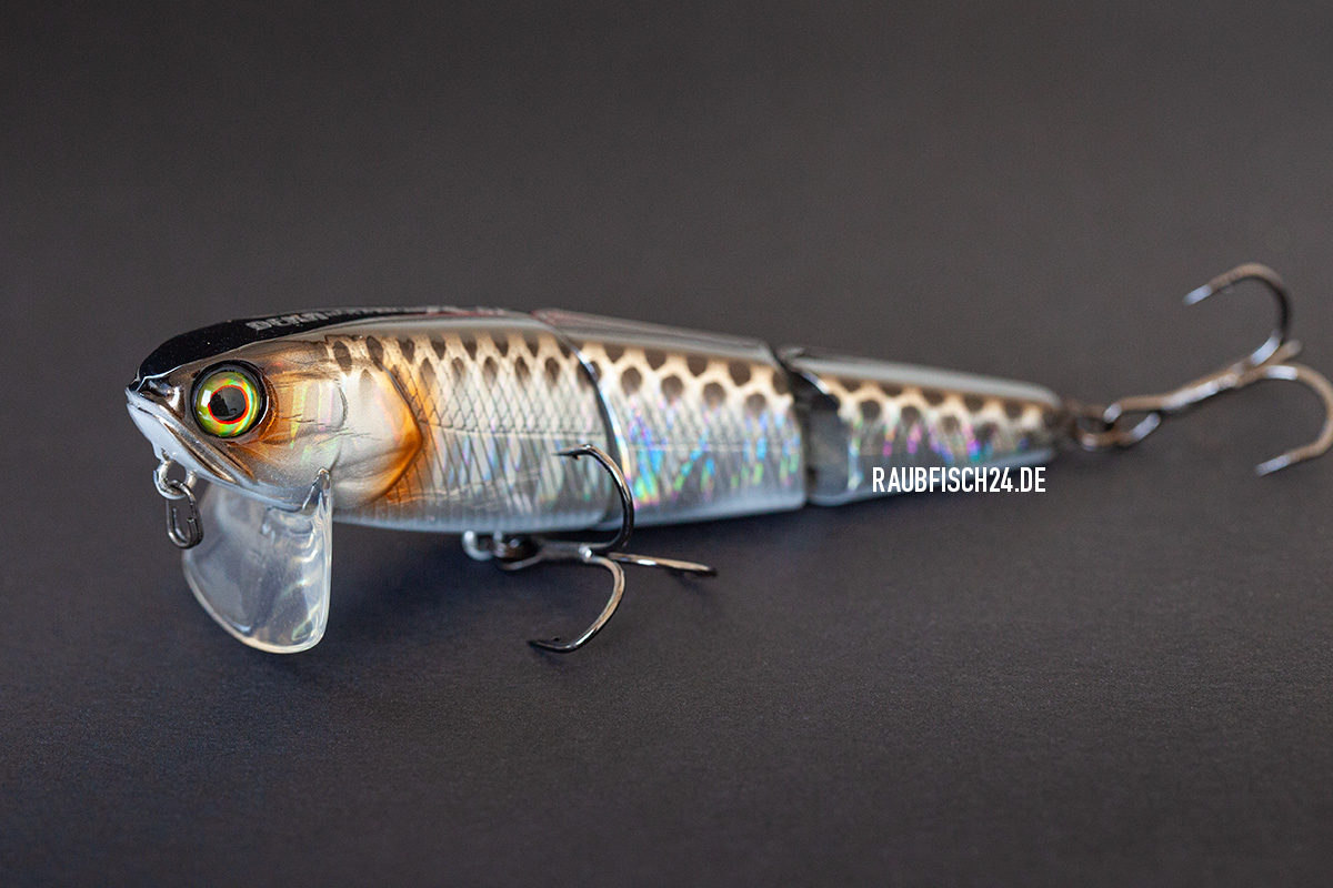 Der Jackall Deka Hamakuru R-SP ist ein dreiteiliger Gelenkköder, der beim Einholen S-förmig schwimmt. Das Klickern und die Vibrationen die von den Segmenten seines Körpers ausgehen, können die Aufmerksamkeit von Raubfischen auch aus großer Entfernung auf sich ziehen. Dank seines Befestigungssystems (2 Punkte pro Gelenk) und einer perfekten Gewichtsverteilung lässt er sich im Gegensatz zu anderen Mehrteilern präzise und weit werfen. Bei gleichmäßigem Einholen oder im ‚Stop and Go‘ wird er alle unsere Raubfische durch sein sehr attraktives ‚Wobbling‘ und ‚Rolling‘ anziehen.