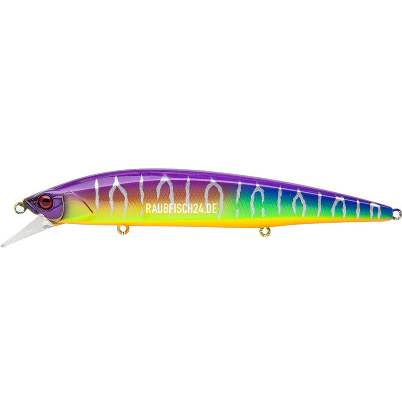 Dieser recht schwere Jerkbait – Jackall Rerange 130SP lässt sich extrem weit Werfen, auch gegen den Wind. Das patentierte «Weight-transfer-System», bestehend aus einem Tungsten-Zylinder und die abge achten abgeflachten Seiten des Rerange sind dafür verantwortlich. Sobald man einkurbelt, rutscht das Gewicht vom Schwanz zum Kopf und wird dort magnetisch fixiert. Durch sein ausgeprägtes «rolling» blitzen die Flanken sehr attraktiv auf. Der Rerange emmitiert dabei tiefe Vibrationen, unwiderstehlich für große Raubfische.