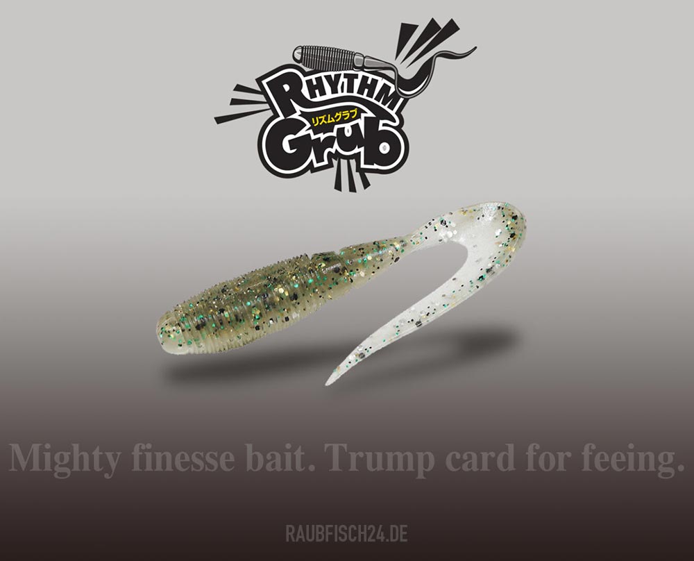 Der Jackall Rhythm Grub 2.4 ist ohne jeden Zweifel einer der vielseitigsten Softbaits. Perfekt angepasst an sehr viele Ultralight-Techniken (‚Finesse‘). Der gerippte Körper ist sehr beweglich, ein ‚Curly Tail‘ Sichelschwanz am hinteren Ende bewegt sich schon beim leisesten Zug. Der Rhythm Grub 2.4 ist die ultimative ‚Waffe‘ für vorsichtige und schwer fangbare Räuber.