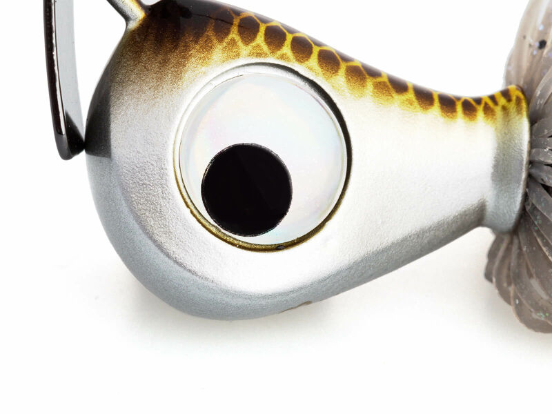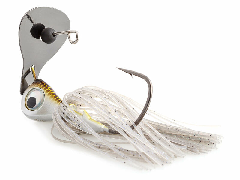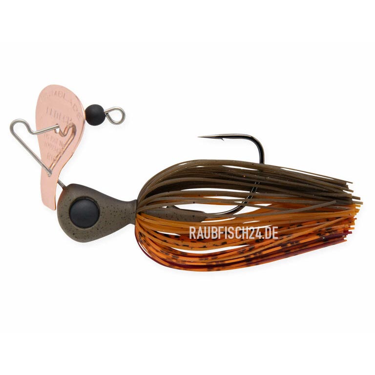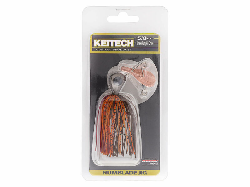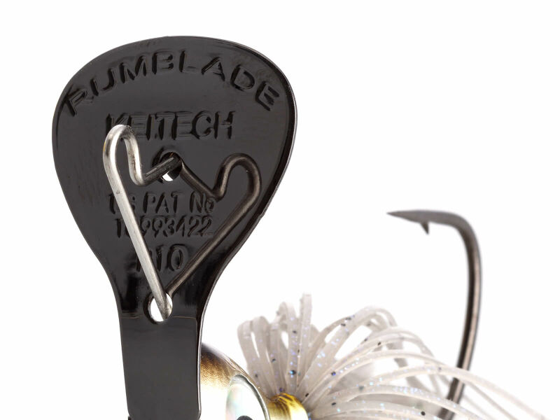 Die Rumblade Jigs sind von Keitech entwickelte Bladed Jigs, bei denen das Blade mit einem Draht – ähnlich wie bei einem Spinnerbait – am Jig befestigt ist. Das hat gleich mehrere Vorteile. Zum Einen spielt das Blade sofort nach dem Eintauchen ins Wasser, da es durch den Draht immer in optimaler Position bleibt und selbst in kleinen Lücken können Bisse provoziert werden. Der festgelegte Bewegungsspielraum des Blades ermöglicht auch eine sehr schnelle Köderführung, ohne dass der Jig kippt. Ein weiterer Vorteil des Drahts ist es, dass die Rumblade Jigs nahezu hängerfrei über Hindernisse gleiten, man kann sie deshalb wie Spinnerbaits problemlos in hängerreichen Gewässerabschnitten fischen. Nach dem Einwurf taumelt der Rumblade Jig aufgrund des starren Blades verführerisch zum Grund und Bisse sind jederzeit möglich. Außerdem überträgt die spezielle Blade-Befestigung die Bewegung auf den gesamten Köder, so dass die Rumblade Jigs inklusive Skirt und Trailer sehr schön spielen. Bei Bladed Jigs ist für deren Fängigkeit auch der Sound sehr wichtig, dass das Blade beim Schlagen auf den Jig erzeugt. Hier hat Keitech die Konstruktion so gewählt, dass das Blade am Jigkopf und an der auf dem Draht befestigten Messingperle anschlägt. Desweiteren sind die Rumblade Jigs mit hochwertigen Silikon-Skirts, einem passenden Keeper für die Trailer und speziell von Decoy angefertigten Haken mit großem Bogen ausgestattet. Als Trailer passen sehr gut schlanke 4″ – 5″ Gummiköder (10 – 12,5 cm), Krebse oder Swimbaits, um damit große Barsche, Hechte, Schwarzbarsche und sicherlich auch Zander an den Haken zu locken!