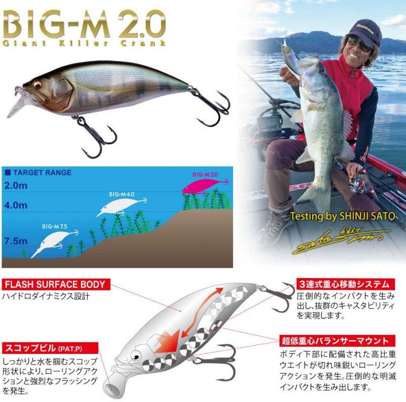 Der Megabass BIG-M 2.0 eignet sich perfekt für grosse Raubfische. Der BIG-M 2.0 zeigt eine sehr ausgeprägte, aggressive Wobblingaktion und durch seinen hochrückigen Körper und den flachen Flanken wirkt er im Wasser enorm voluminös. Ein kompakter Wobbler, der mit jeder mittleren Spinnrute fischbar ist, und dennoch die ganz grossen Hechte anlockt. THE MUST HAVE für alle Hechtangler die mit Hardbaits fischen.