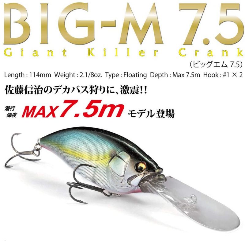 Der Megabass BIG-M 7.5 ist ein Crank für grosse Raubfische. Der BIG-M 7.5 taucht bis 7,5 Meter ab und zeigt eine sehr ausgeprägte, aggressive Wobblingaktion und durch seinen hochrückigen Körper und den flachen Flanken wirkt er im Wasser enorm voluminös. THE MUST HAVE für alle Hechtangler die mit Hardbaits fischen.
