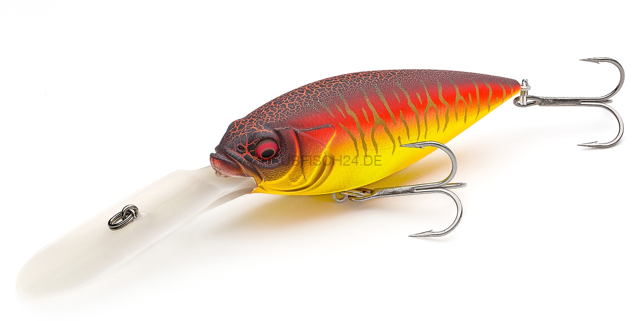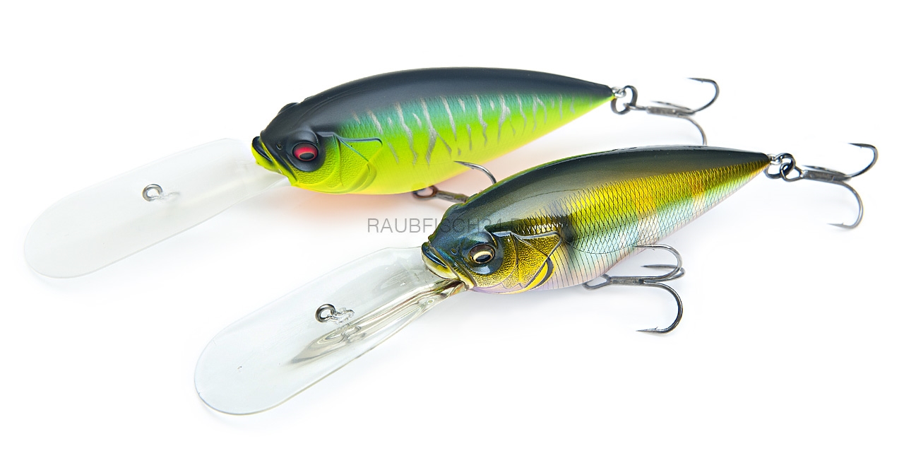 Die große Tauchschaufel bringt den Megabass Deep-Six nicht nur auf 4.5 – 6.0 m Tiefe, sondern sorgt auch für gute Bottom Bouncing Eigenschaften. Der Crank Megabass Deep-Six springt dadurch leicht über Unterwasserhindernisse und bleibt nur sehr selten hängen. Kleine Kugeln im Inneren des Köders sorgen für einen hochfrequenten Sound.