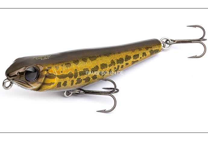 Dieser neue Balancer schiebt den Köder beim Laufen, so dass die Roll-Walk-Aktion des DOG-X Jr. für seine Größe schärfer und dynamischer ist. Der Punkt ist, dass kleinere Köder nicht unter einer geringeren Aktion leiden müssen. Die Aktion des DOG-X Jr. wird Sie an einen Köderfisch erinnern, der von einem Raubfisch gejagt wird und hektisch über die Wasseroberfläche springt.