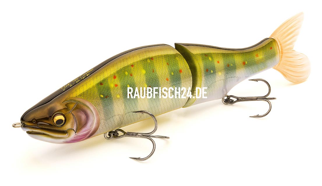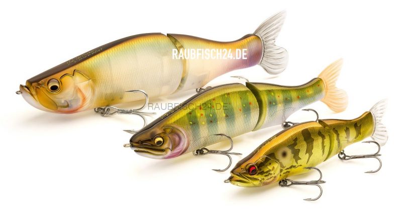 Dieser sinkende Megabass Swimbait – i-Slide 185 besteht aus zwei Teilen und taucht auf ca. 0.5 Meter ab.