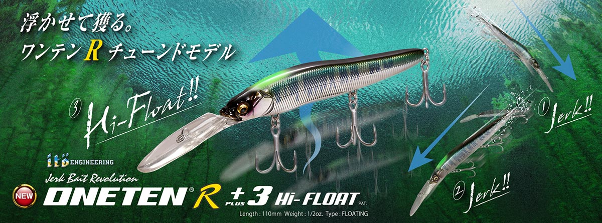 Der legendäre Megabass Oneten R+3 ist ab sofort auch in einer Hi-Float Version verfügbar. Der Oneten R+3 Hi-Float taucht auf ca. 3 – 4 Meter ab.