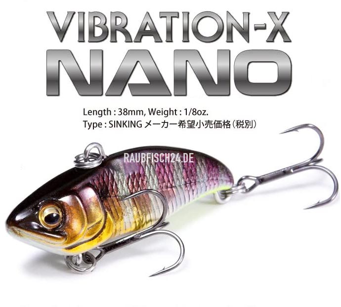 Der Megabass Vibration-X Nano ist ein Mini Rattlin. Wenn man ihn gegen das Wasser zieht, fängt der Körper an zu vibrieren. Der Vibration-X Nano kann in unterschiedlichen Tiefen genutzt werden und fängt besonders gut Barsche, Forellen und Döbel.