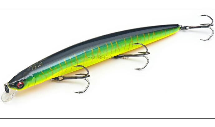 Der flachlaufende Megabass X-140 World Challenge ist 144 mm lang, 18 Gramm schwer und taucht auf ca. 0.5 – 1.0 Meter ab. Perfekt geeignet zum Hecht- und Zanderangeln, drei scharfen Drillinge greifen sehr gut im Räubermaul.