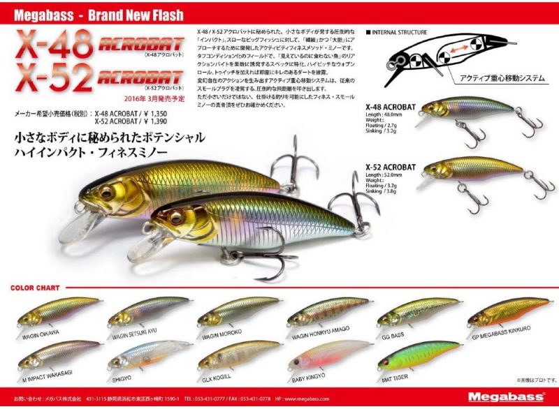 Der Megabass X-48 Acrobat (S) eignet sich perfekt zum leichten Spinnfischen auf Forelle, Barsch, Rapfen und Döbel.