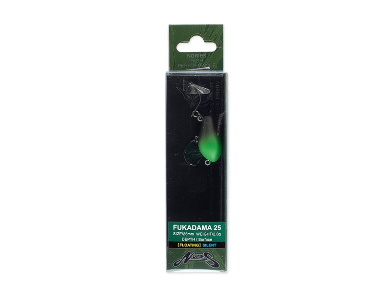 Der Nories Fukadama 25 ist ein kleiner Topwater-Hardbait, der mit seinem Spinnerblatt am Bauch die Forellen an die Wasseroberfläche lockt. Dort wird der käfer-ähnliche Hardbait dann meist vehement attackiert. Das Spinnerblatt ist speziell geformt, so dass es auch bei sehr langsamer Einholgeschwindigkeit spielt. Der Fukadama 25 lässt sich relativ weit werfen und spielt besonders in flachen Gewässerbereichen seine Stärken aus.