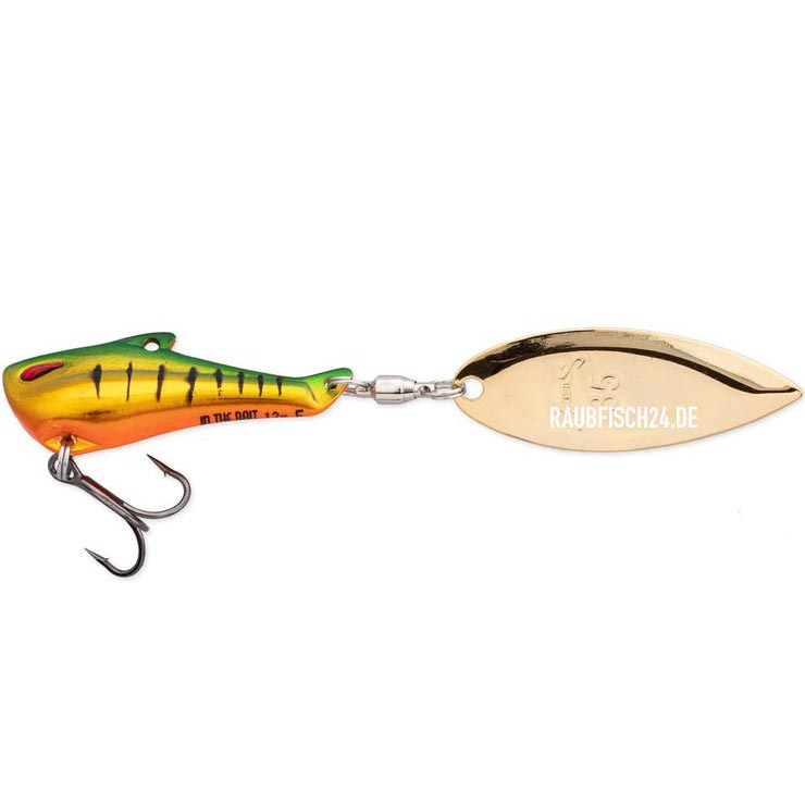 Der 12g In The Bait Bass von Nories ist ein Jig Spinner, der sich sehr vielseitig in allen Gewässertiefen fischen lässt. Zum einen ist er bestens geeignet, um raubende Fische im Mittelwasser beim Einleiern zu suchen. Er kann aber auch grundnah gejiggt werden oder mit hoher Geschwindigkeit an der Oberfläche geführt werden. Das Besondere am In The Bait Bass ist aber das Design, dass zuverlässig verhindert, dass sich der Drilling in der Hauptschnur verfängt. Die spezielle Form des Körpers und die der Befestigungsöse an der Oberseite halten den Haken vom Vorfach fern. Das Spinnerblatt wird durch die nach oben versetzte Öse von der Schnur ferngehalten, so dass der Jig auch im Absinken immer zuverlässig spielt und Bisse provoziert. Der Körper ist aus einer harten Metallmischung gefertigt, so dass der In The Bait Bass auch nach harten Drills oder nach Steinkontakt in Form bleibt. Der In The Bait Bass Jig Spinner ist eine Bank auf Barsche und Rapfen!