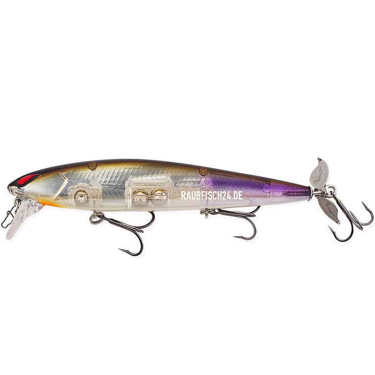 Der Nories Laydown Minnow WAKE Prop Plus ist ein Topwater-Hardbait und wird an der Oberfläche gefischt. Die breite Tauchschaufel erzeugt eine rollende Bewegung des Körpers beim Abtauchen und der kleine Propeller sorgt für zusätzliche Wasserverwirbelungen. Die Führung des Laydown Minnow WAKE Prop Plus ist recht einfach, leichte Schläge mit der Rute reichen aus, man kann die Führung aber natürlich auch mit langsamen und schnellen Einholphasen variieren. Zielfisch sind neben dem Schwarzbarsch in unseren Gefilden ganz klar Rapfen, große Barsche und Hechte.