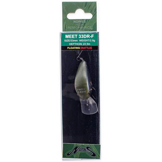 Der Meet 33DR-F von Nories ist ein Crankbait mit speziell geformter Tauchschaufel, der Tauchtiefen von 20 cm bis 2,5 m erreichen kann. Seine gebogene Tauchschaufel ermöglicht es, den Meet mit ein paar schnelleren Kurbelumdrehungen auf die gewünschte Tiefe zu bringen und diese hält er dann bei langsamerer Einholgeschwindigkeit ohne sein attraktives Köderspiel zu verlieren. Das macht den Meet 33DR-F einzigartig und bietet dem versierten Forellenangler die Möglichkeit, insbesondere beißfaulen Forellen den Wobbler gezielt auf Augenhöhe anzubieten.