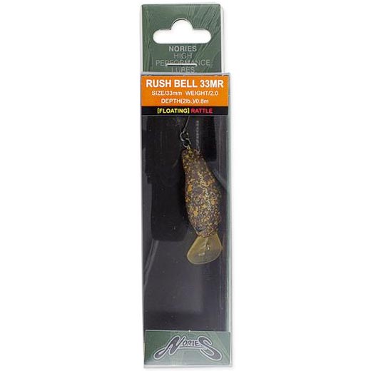 Der Rush Bell 33MR von Nories ist ein bis ins kleinste Detail durchdachter Köder, der vor allem bei der Angelei auf Forellen eingesetzt wird. Die speziell geformte Tauchschaufel führt auch bei langsamer Geschwindigkeit zu einer starken Taumelbewegung und hält den Köder kontinuierlich in seiner Lauftiefe. Das eingebrachte Tungsten-Gewicht ermöglicht weite, zielgenaue Würfe auch unter windigen Bedingungen. Seine unebene Oberfläche bricht und reflektiert Licht, um somit die Aufmerksamkeit auf sich zu lenken. Der Rush Bell 33MR bringt auch dann noch Fische, wenn deren Aktivität bereits abgenommen hat!