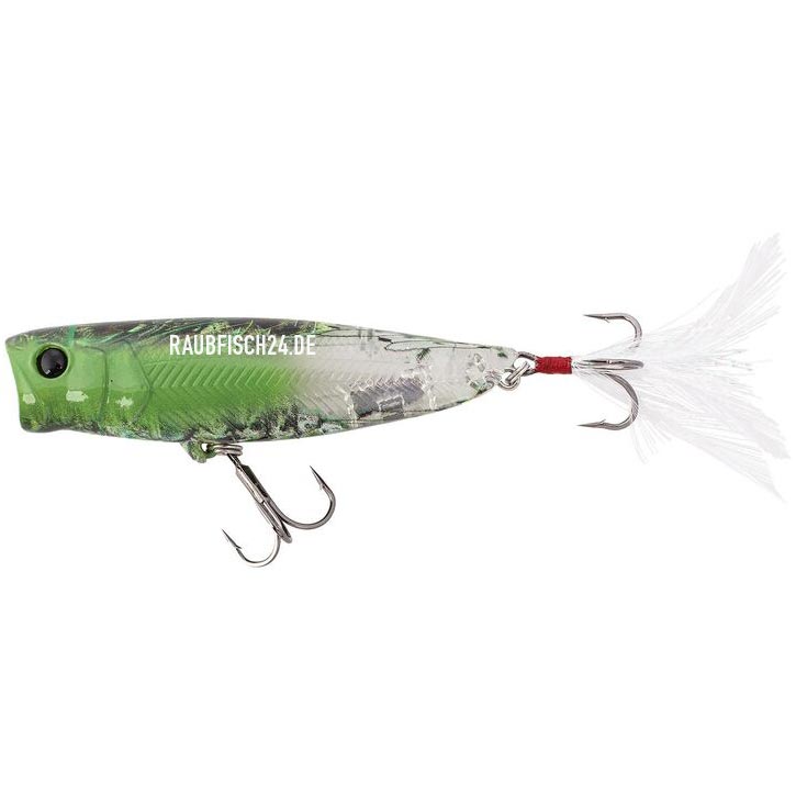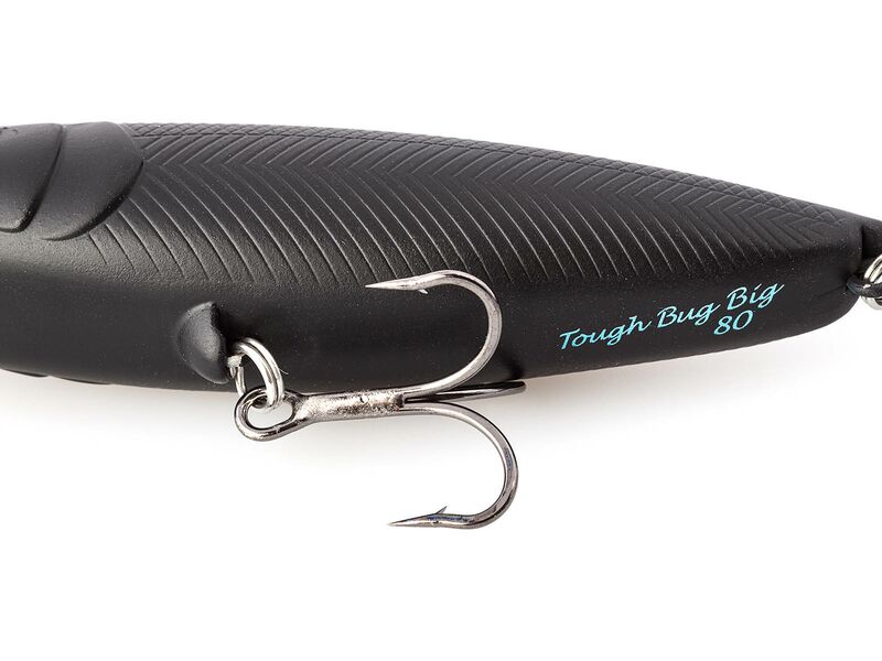 Der Tough Bug Big 80 von Nories ist ein Popper, der für die Angelei auf Schwarzbarsch in stark befischten Gewässern entwickelt wurde. Er ist gut doppelt so schwer wie sein kleinerer Bruder der Tough Bug 65 und ermöglicht so problemlos große Wurfweiten. Die Größe und Form eignet sich auch für unsere heimischen Räuber, wie Barsch, Rapfen oder Hecht. Der Tough Bug ist so konzipiert, dass er möglichst sanft und leise auf dem Wasser auftrifft, um vorsichtige Fische nicht zu verscheuchen. Die Gewichtsverteilung im Köder ermöglicht präzise und weite Würfe, sowohl mit der Spinning- als auch mit der Baitcasting-Kombo. Der Popper ist so ausbalanciert, dass er auch mit den Federn am hinteren Drilling schnell in die Position kommt, um beim Zupfen einen möglichst natürlich Splash-Sound zu erzeugen. Mit dem Nories Tough Bug Big 80 erreicht man problemlos auch weiter draußen stehende Räuber und er sorgt mit seiner größeren Silhouette schnell für Aufmerksamkeit unter Wasser!