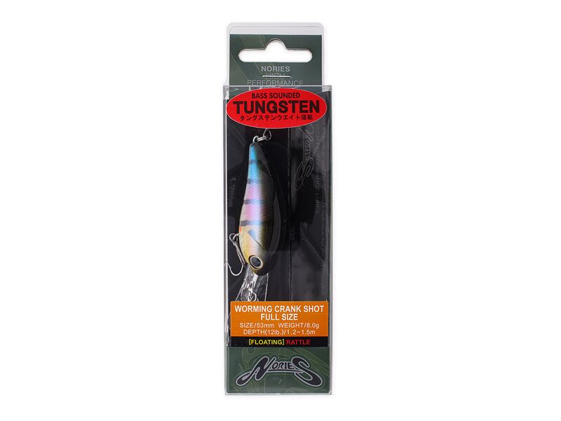 Der Worming Crank Shot FULL SIZE von NORIES ist ein Crankbait, der sich besonders gut zum Barsch- und Zander-Angeln eignet. Er ist aus ABS-Material hergestellt und im Inneren befinden sich kleine Tungsten-Kugeln, die ein sehr dezentes Rassel-Geräusch erzeugen. Die speziell geformte Tauchschaufel unterstützt die sehr guten Wurfeigenschaften und lässt den Worming Crank Shot FULL SIZE schnell die gewünschte Tiefe erreichen. Die fängigen Farben, hochwertigen Sprengringe und extrem scharfen Drillinge machen diesen erstklassigen Crankbait einfach perfekt!