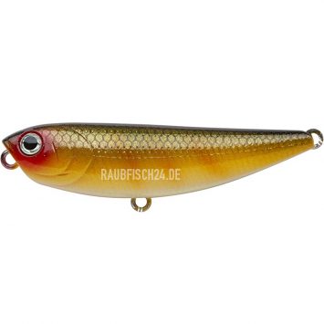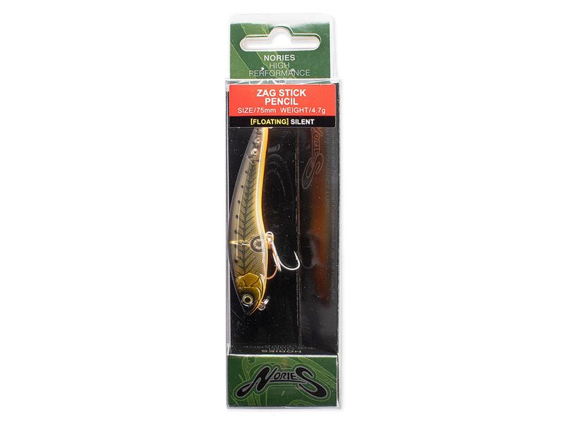 Der Nories Zag Stick Pencil ist ein kleiner, feiner Hardbait für die Topwater-Angelei. Mit regelmäßigen, leichten Zupfern erzeugt man einen rechts-links Lauf an der Wasseroberfläche mit verhaltenem Plätschern und Ploppen. Twitcht man den ZagStick Pencil kräftiger, taucht er ab und man kann ihn knapp unter der Wasseroberfläche führen, wobei die Flanken immer wieder aufblitzen. Die beiden Führungsstile lassen sich natürlich auch kombinieren. Bei Räubern in der Nähe kommt auf jeden Fall die Nachricht an: Verletztes Fischchen an der Wasseroberfläche – leichte Beute! Der Zag Stick Pencil ist mit seinen 75 mm Länge genau die richtige Größe für Barsche, aber auch Rapfen, Aland, Döbel und Hechte konnten wir schon mit ihm fangen!