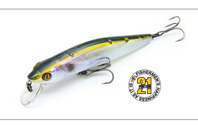 Der Pontoon21 Crack Jack 98SP-SR ist ein schwebender Minnow. Durch die Konstruktion der Tauchschaufel ist er für Lauftiefen zwischen 0,7 – 1 Meter konzipiert. Wenn Sie einen Köder suchen, der ein breites Spektrum vom langsamen, kontinuierlichen Einholen bis hin zum starken Twitchen und Jerken verträgt, sind Sie mit dem Crack Jack 98SP-SR optimal ausgerüstet.