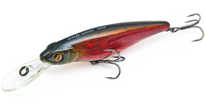 Der Lauf des Greedy Guts ist eine Mischung aus wobbelnden und flankenden Bewegungen die sich sowohl für moderne Führungsstile wie Twitchen, Jerken, etc. eignet, wie auch zum gleichmäßigen Einkurbeln oder zum Schleppen. Durch das patentierte Mag Force Balance II kann dieser Wobbler sehr gut geworfen werden.