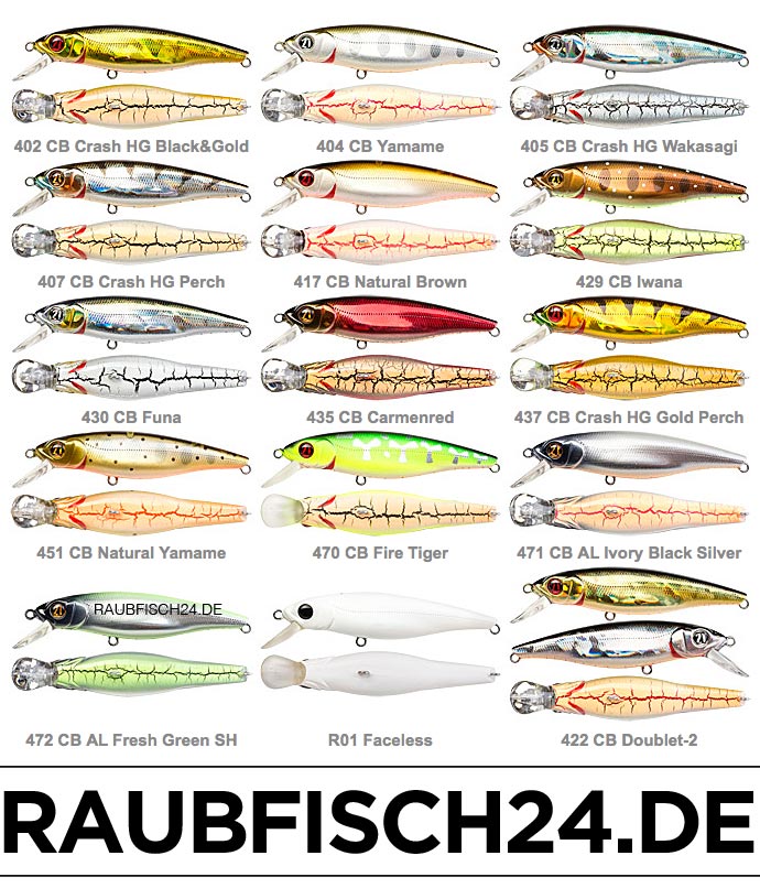 Diese Serie beinhaltet unterschiedliche Größen, die in zwei Varianten der Schwimmfähigkeit ausgeführt sind – die neutrale (suspending – SP) und auftauchende (floating – F). Darüber hinaus besitzt jeder Wobbler (unabhängig von der Größe und der Schwimmfähigkeit) die klein (SR) -und mitteleintauchende (MDR) Eigenschaft. Zusätzliche Attraktivität erlangt der Wobbler aufgrund seiner einzigartigen Farbe, die jeden Raubfisch sowie den jeden Spinnangler erfreuen wird.