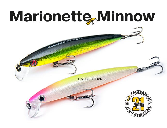 Pontoon21 Marionette Minnow 108F-SR ist ein schwimmender Allround-Wobbler fürs Spinnfischen in flachen Gewässern.