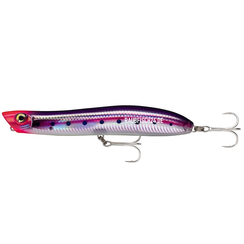 Der Alleskönner unter den Topwaterködern – der MaxRap Walk’N Roll spritzt, taucht auf, schießt und schlittert unter allen Bedingungen über die Wasseroberfläche. In Zusammenarbeit mit Atlantik-Profis entwickelt, ist dieser Köder so beschwert, dass er maximale Wurfweiten spielend erreicht und selbst bei schlechten Wetterbedingungen und rauer See höchste Stabilität bewahrt. Bei gleichmäßigem Zug „spuckt” und kippelt der MaxRap Walk’N Roll von Seite zu Seite; unter regelmäßigen Schlägen mit der Rutenspitze entwickelt er eine perfekte Walking-Aktion. Schnell eingekurbelt imitiert er ein flüchtendes Beutefischchen; durch regelmäßige Twitches bewegt er sich ruckartig durchs Wasser. Ausgestattet mit 2X-tarken 7554Ti Drillingen von VMC.“