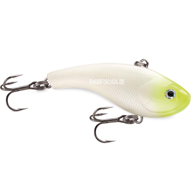 Durch schnelle Rutenschläge beginnt der Slab Rap in ausladenden, unberechenbaren Zügen zu suchen und kreist nach dem Stehenlassen zurück zur Mitte. Das Auf- und Abbewegen der Rute erzeugt eine subtile Vibration beim Aufstieg, gefolgt von einem fluchtartigen Kippeln beim Absinken. Diese Aktion wird durch die Schwerpunktverlagerung nach vorne unterstützt und überzeugt selbst passive Fische.