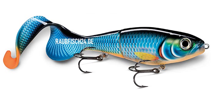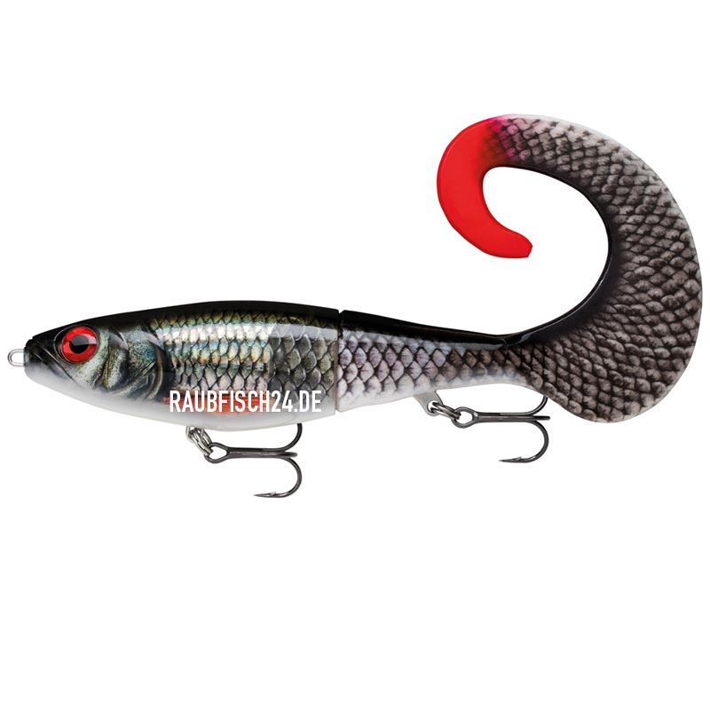 Der Rapala X-Rap Otus kombiniert auf beeindruckende Weise Rapalas fängige X-Rap-Konstruktion mit einem nahtlos übergehenden, farblich perfekt abgestimmten Sichelschwanz. Wegen seines langsamen Absinkens und seines breiten Tails ist der X-Rap Otus die ideale Wahl für kaltes Wasser und anspruchsvolle Räuber. Beim gleichmäßigen oder variantenreichen Einkurbeln pulsiert der große Sichelschwanz verführerisch. In den Pausen fungiert der Schwanz als eine Art Fallschirm und stabilisiert den Köder beim gemächlichen Absinken in die Tiefe. Der softe Schwanz ist mittels einer 6-Punkt-Edelstahlplatte fest am Body arretiert. Ein zusätzlicher Ersatzschwanz liegt bei. Ausgestattet mit Coastal BlackTM Drillingen von VMC.