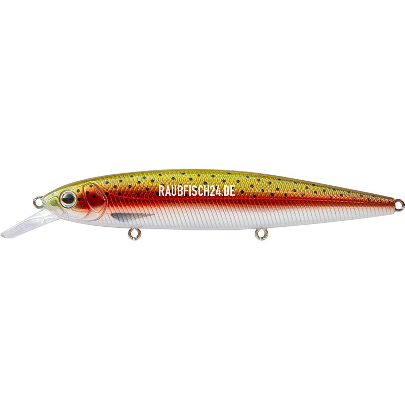 Der flachlaufende Strike Pro Bold 110SP ist 110 mm lang, 15.4 Gramm schwer und taucht auf ca. 0.6 – 1.2 Meter ab. Perfekt geeignet zum Barsch, Hecht- und Zanderangeln, drei scharfen Drillinge greifen sehr gut im Räubermaul.