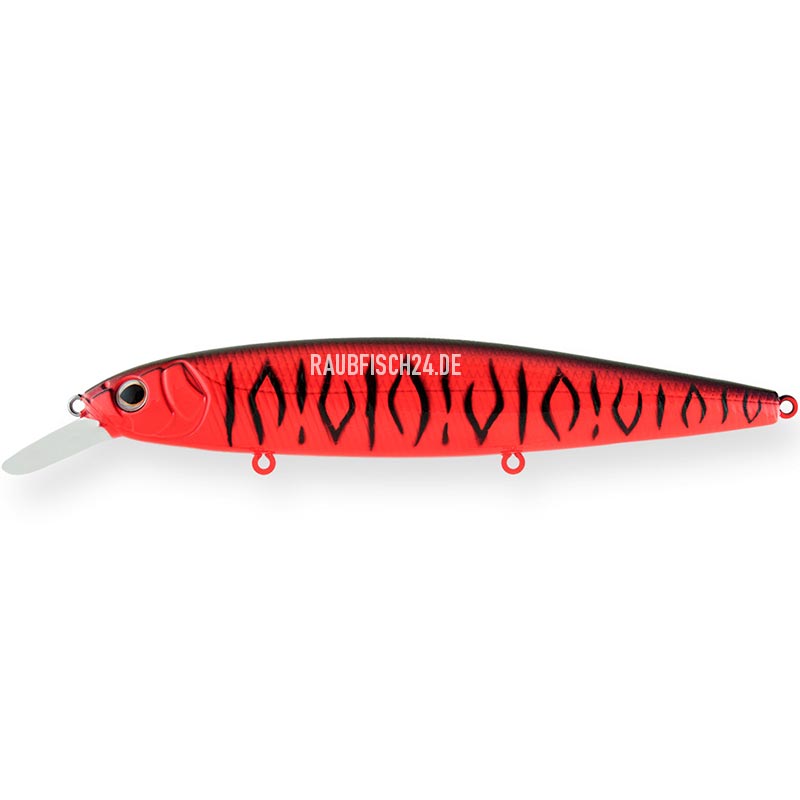 Der flachlaufende Strike Pro Bold 130SP ist 130 mm lang, 24.5 Gramm schwer und taucht auf ca. 1.3 – 1.8 Meter ab. Perfekt geeignet zum Hecht- und Zanderangeln, drei scharfen Drillinge greifen sehr gut im Räubermaul.