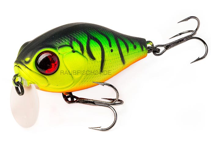Die nahezu im 90°-Winkel abstehende Tauchschaufel sorgt dafür, dass der kleine Crankbait extrem oberflächennah (subsurface) läuft und es je nach Strömung und Einholgeschwindigkeit gerade einmal auf knappe 20 cm Lauftiefe bringt. Daher eignet er sich sehr gut für Räuber, welche sich auf oberflächennahe Kost eingeschossen haben. Dementsprechend lässt er sich auch in sehr flachen Gewässer fischen. Dank der floating Eigenschaft könnt ihr ihn auch vor einem Hindernis auftreiben lassen, um Hänger zu vermeiden.