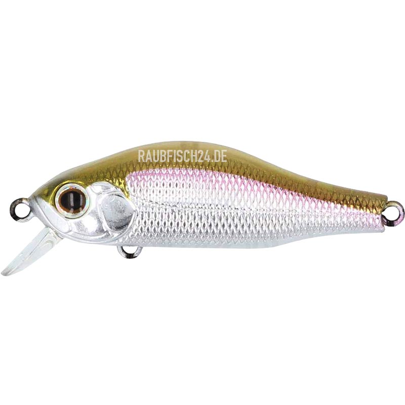 Der ZipBaits Khamsin Jr SP-SR ist ein 5 cm langer, hochrückiger aber dennoch schmaler Hardbait. Dadurch lässt er sich sowohl als Crankbait als auch als Twitchbait nutzen. Durch seine suspending Eigenschaft (SP) kann man ihn während Spin-Stops oder zwischen einzelnen Twitches verführerisch auf der Stelle stehen lassen. Folgende Räuber nutzen diese Phasen gerne um eine Attacke zu starten. Beim Cranken taucht er auf ca. 0,5 -1 m Lauftiefe ab. Damit seid ihr zum Beispiel für die Rapfen- oder Barschjagd im Sommer perfekt ausgerüstet. Denn genau dann haben die Brutfische eine ungefähre Größe von 4-6 cm und müssen nur noch in ihrem Aufenthaltsbereich imitiert werden.